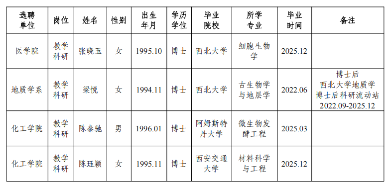注:1.本人须在公示期满后1个月内签订就业协议(开具接收函),并提前准备bat365官网师资博士后入站材料(材料清单详见:https://rsc.nwu.edu.cn/bshgz/jczdjcl.htm);