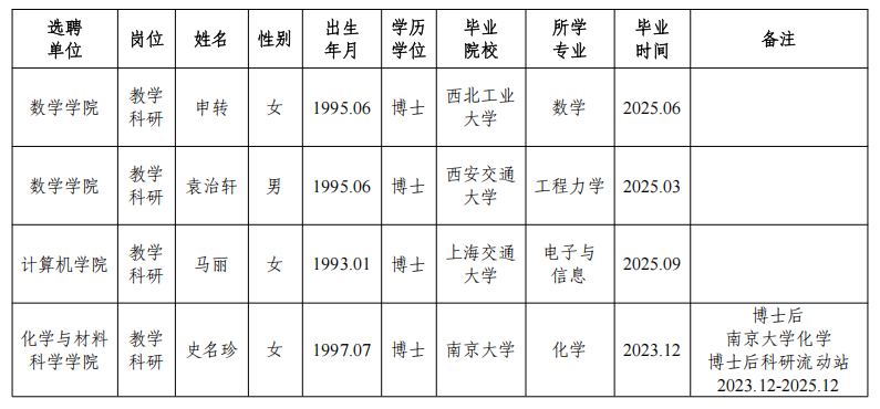 经资格审查,用人单位考查,学校专家评审会审议,bat365官网拟确定下列人员来校工作,聘任方式为事业编正常选聘。本着公平、公正、公开的原则,现将本次拟选聘人员基本情况公示如下: