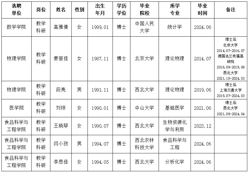经用人单位推荐,人力资源部审查,学校教学督导及院系相关专家考核,bat365官网拟确定下列人员来校工作。本着公平、公正、公开的原则,现将本次拟选聘人员基本情况公示如下: