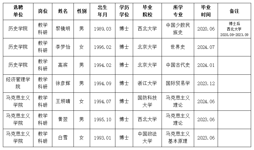 经用人单位推荐,人力资源部审查,学校教学督导及院系相关专家考核,bat365官网拟确定下列人员来校工作。本着公平、公正、公开的原则,现将本次拟选聘人员基本情况公示如下: