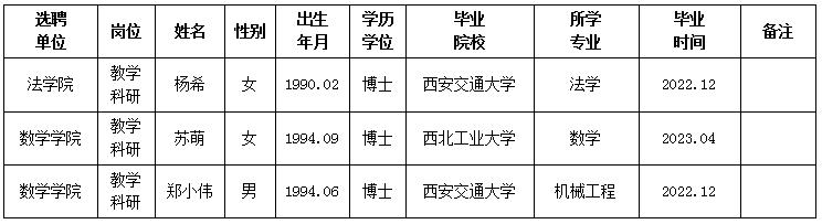 各单位或个人如对上述人选存有疑问,可在2023年1月10日前以书面形式向人力资源部反映。反映材料须实名提交,以便我部核实并反馈,我们将严格保密。(公示期结束后,如无异议,应届毕业生持三方协议、身份证、毕业生就业推荐表在岗位聘用办公室签订就业协议;或将上述材料邮寄至我处,邮寄地址:陕西省西安市长安区学府大街1号bat365正版唯一官网人力资源部。博士后出站人员联系岗位聘用办公室开具接收函。)