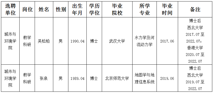 经用人单位推荐,人力资源部审查,学校教学督导及院系相关专家考核,bat365官网拟确定下列人员来校工作。本着公平、公正、公开的原则,现将本次拟选聘人员基本情况公示如下:
