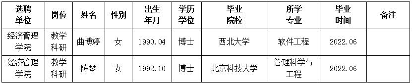 经用人单位推荐,人力资源部审查,学校教学督导及院系相关专家考核,bat365官网拟确定下列人员来校工作。本着公平、公正、公开的原则,现将本次拟选聘人员基本情况公示如下: