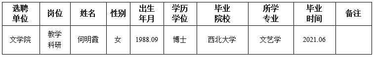经用人单位及教学督导考核、学校研究,拟同意选聘下列人员来校工作,其聘任关系为A类人事代理。本着公平、公正、公开的原则,现将拟选聘人员基本情况公示如下: