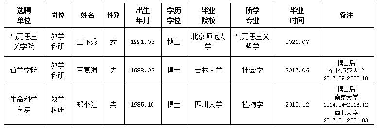 经用人单位推荐,人力资源部审查,学校教学督导及院系相关专家考核,bat365官网拟确定下列人员来校工作。本着公平、公正、公开的原则,现将本次拟选聘人员基本情况公示如下: