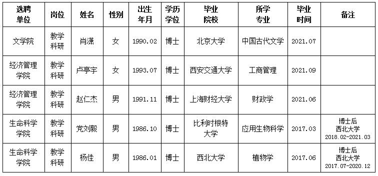 经用人单位推荐,人力资源部审查,学校教学督导及院系相关专家考核,bat365官网拟确定下列人员来校工作。本着公平、公正、公开的原则,现将本次拟选聘人员基本情况公示如下:
