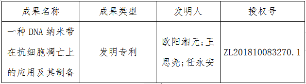 发明专利:“一种DNA纳米带在抗细胞凋亡上的应用及其制备方法”。