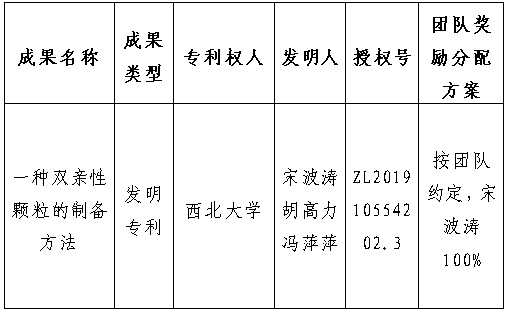 该发明公开了一种双亲性颗粒的制备方法,该方法基于玫瑰花瓣效果的仿生性,具有简便易操作、普适性强、不引入有毒有害试剂且所制备颗粒形貌均一的特点。