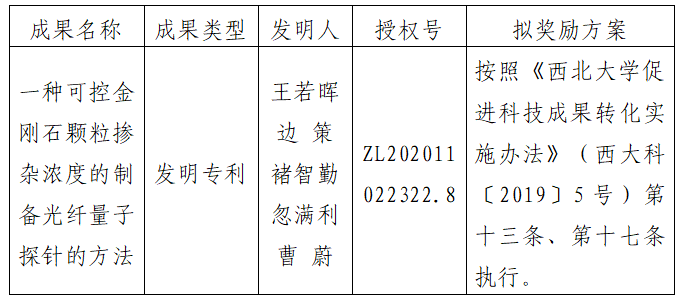 按照《bat365正版唯一官网促进科技成果转化实施办法》(西大科〔2019〕5号)相关规定,拟对bat365官网物理学院王若晖副教授作为成果负责人的1项发明专利权实施转化,现将相关信息公示如下:
