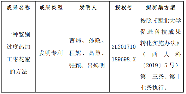 附件:拟许可成果信息及奖励方案