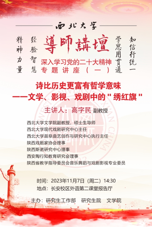 导师讲坛“深入学习党的二十大精神”专题讲座(一):诗比历史更富有哲学意味——文学、影视、戏剧中的“绣红旗”