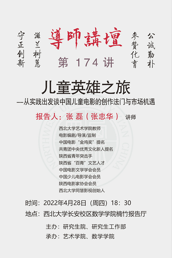 导师讲坛第174讲:儿童英雄之旅-从实践出发谈中国儿童电影的创作法门与市场机遇