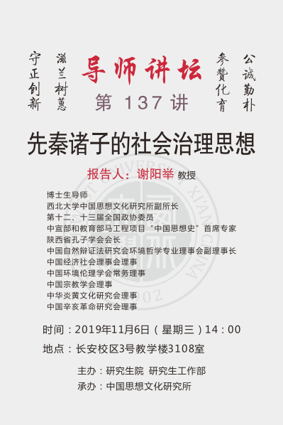 导师讲坛第137讲:先秦诸子的社会治理思想