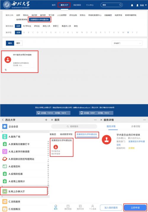 为保证服务保障工作有序开展,进一步提高办事效率和服务质量,在网络和数据中心的支持下,我处于即日起启用学术委员会用印申请信息化服务平台。