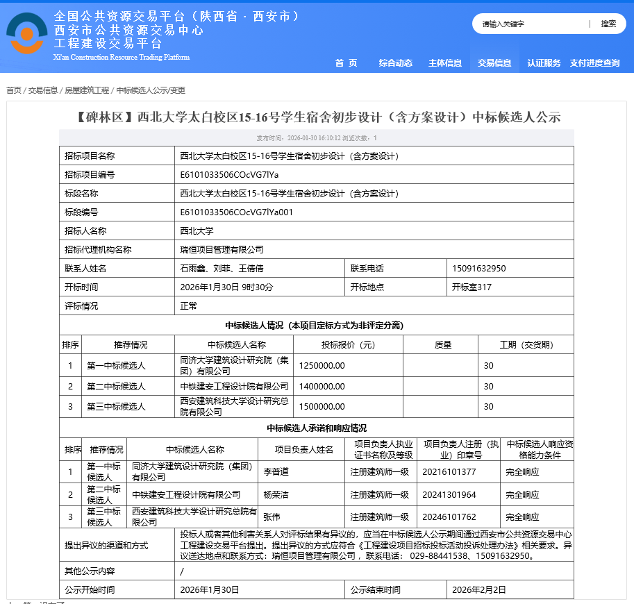 下一篇:bat365正版唯一官网太白校区13-14号学生宿舍初步设计(含方案设计)中标候选人公示