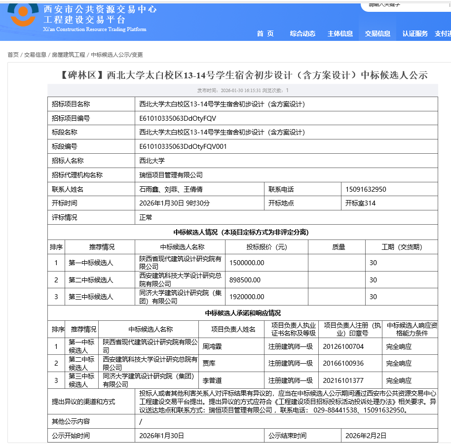 上一篇:bat365正版唯一官网太白校区15-16号学生宿舍初步设计(含方案设计)中标候选人公示