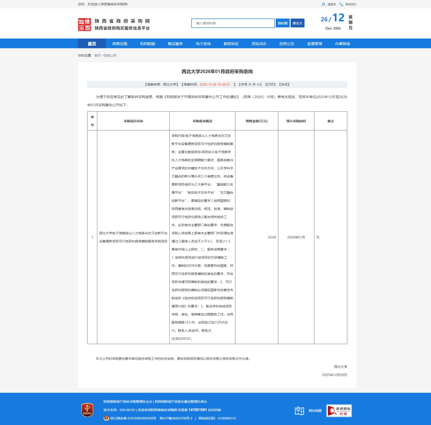 原公告链接:https://www.ccgp-shaanxi.gov.cn/freecms/site/shaanxi/ggxx/info/2025/8a69c2309b4638eb019b59d6b05e5c3e.html?noticeType=59¬iceId=05a87aae-e23a-11f0-8063-08c0eb20c666
