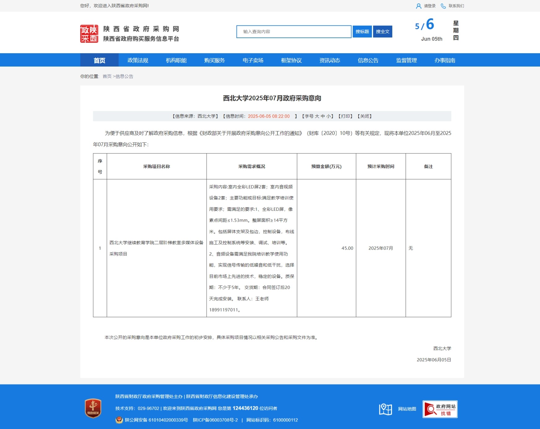 原公告链接:https://www.ccgp-shaanxi.gov.cn/freecms/site/shaanxi/ggxx/info/2025/8a69c8d196ce440a01973d667fcf58b5.html?noticeType=59¬iceId=0a572344-41a5-11f0-8063-08c0eb20c666