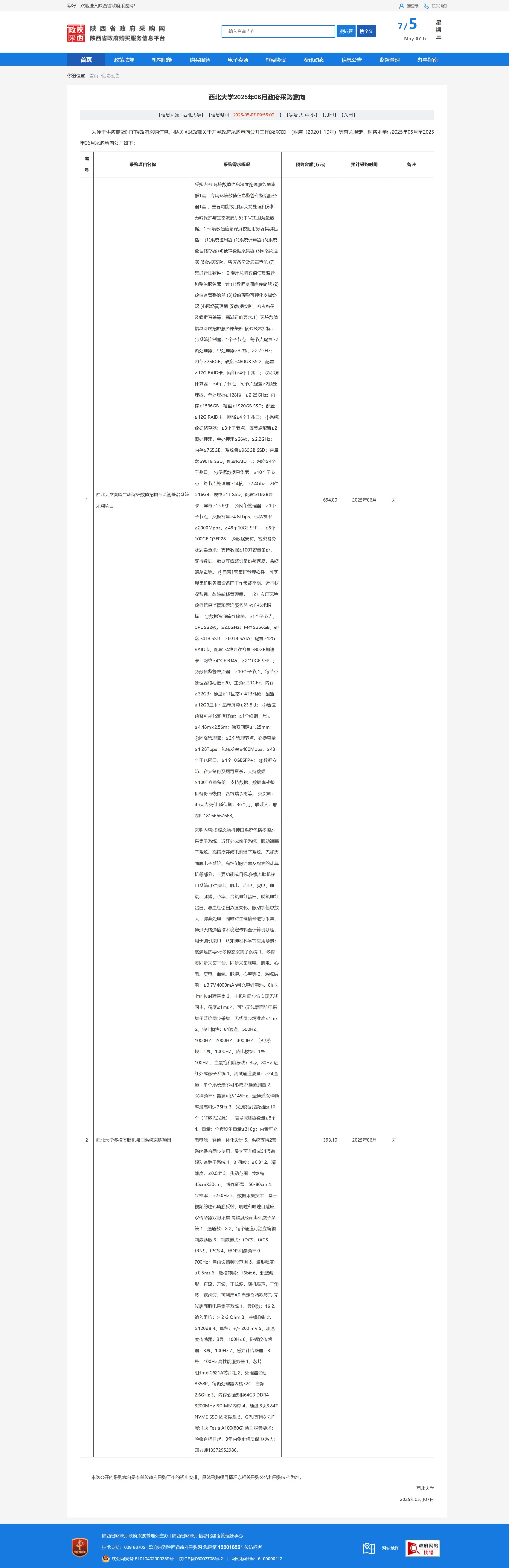 原公告链接:https://www.ccgp-shaanxi.gov.cn/freecms/site/shaanxi/ggxx/info/2025/8a69c7b69656b6a8019684c2861e2a70.html?noticeType=59¬iceId=2d11d827-2ae8-11f0-8063-08c0eb20c666