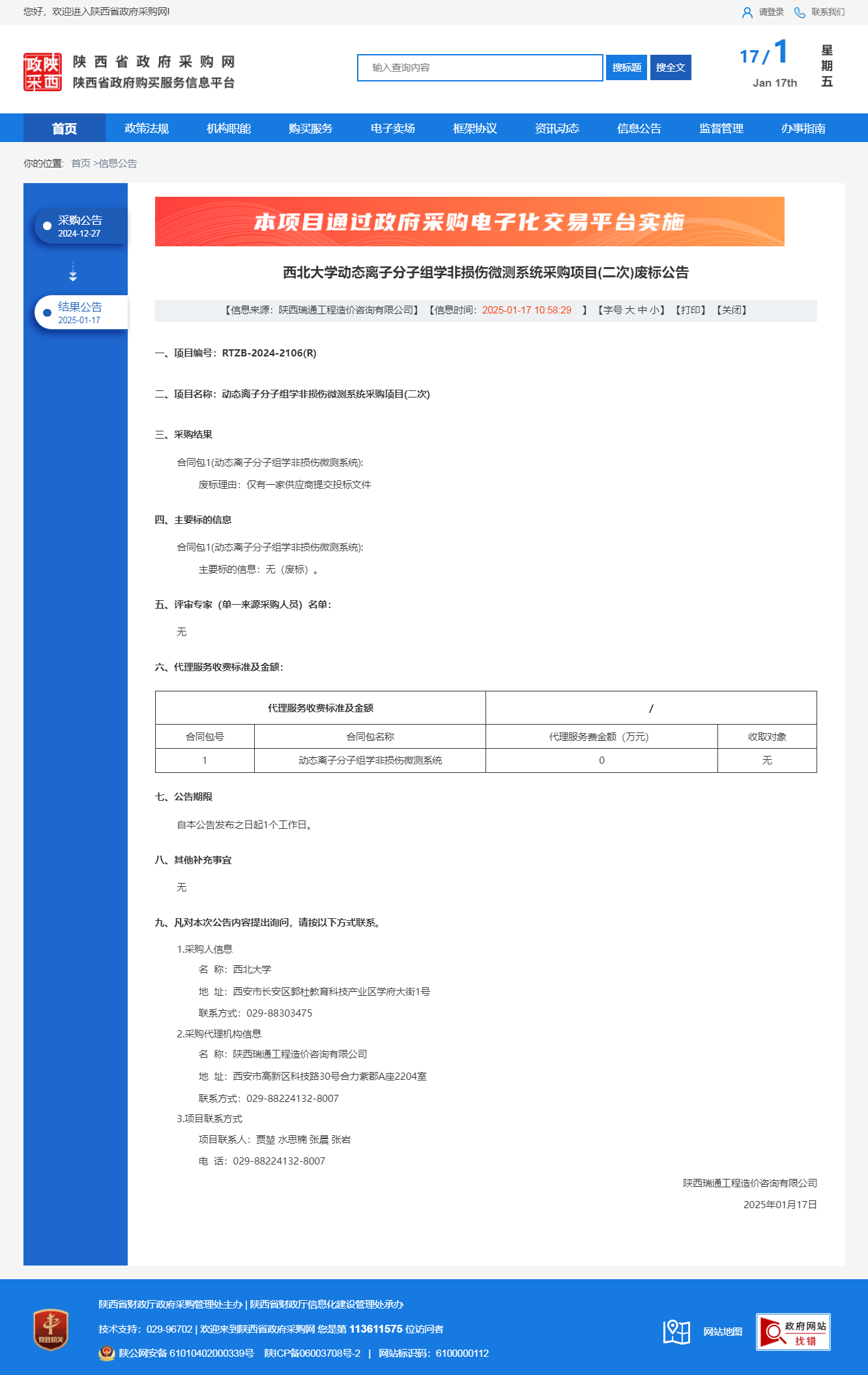 原公告链接:http://www.ccgp-shaanxi.gov.cn/freecms/site/shaanxi/ggxx/info/2025/8a69c96e945549bc0194722b08d821b5.html?noticeType=001006¬iceId=9dc5fb96-d480-11ef-8063-08c0eb20c666