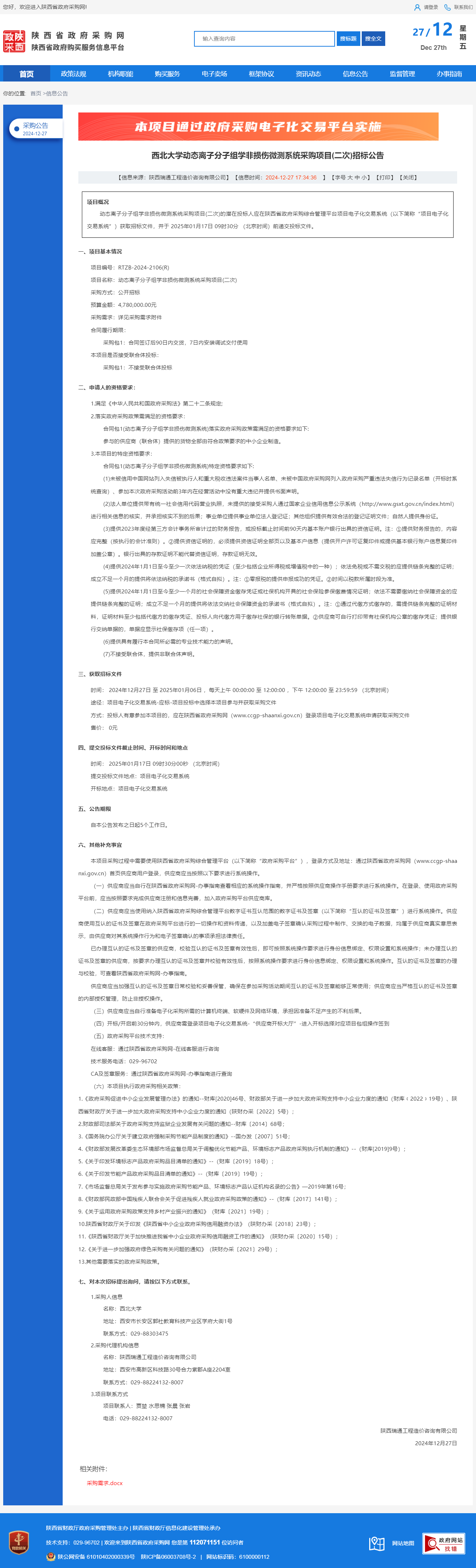 原公告链接:http://www.ccgp-shaanxi.gov.cn/freecms/site/shaanxi/ggxx/info/2024/8a69c5a59218576d019407700c364918.html?noticeType=001011¬iceId=6f721510-c437-11ef-8063-08c0eb20c666