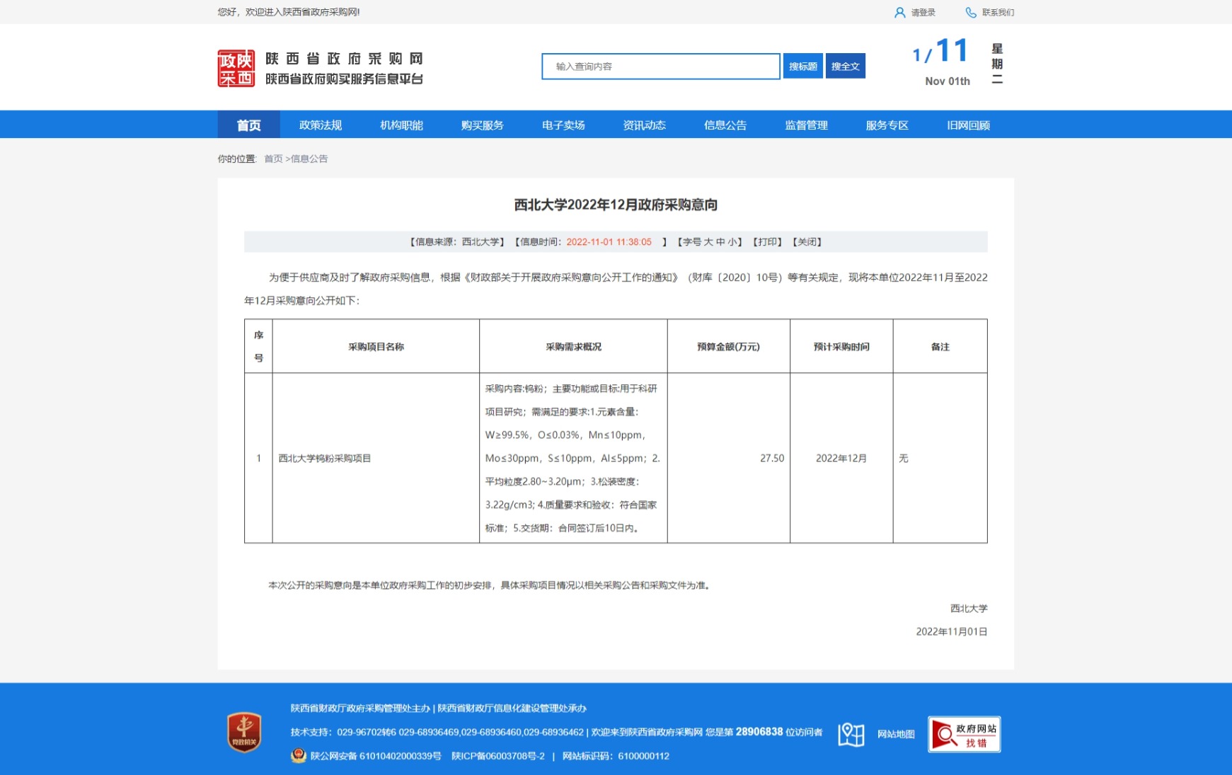 原公告链接:http://www.ccgp-shaanxi.gov.cn/freecms/site/shaanxi/ggxx/info/2022/8a69c851842917c901843142ef485753.html?noticeType=59¬iceId=3378fddc-5997-11ed-9a8e-08c0eb20c666