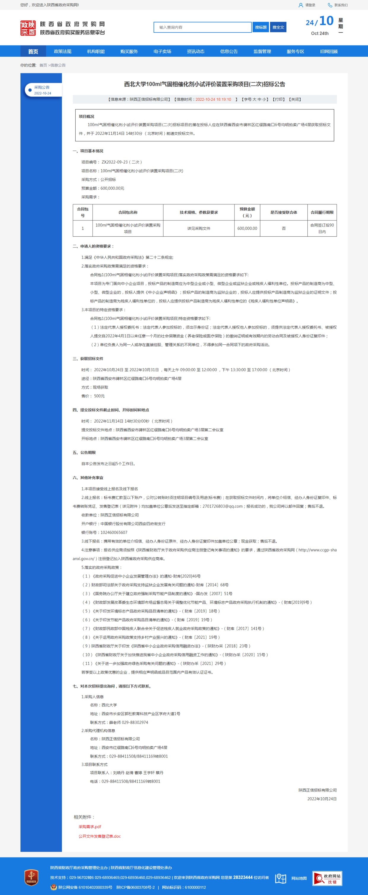 原公告链接:http://www.ccgp-shaanxi.gov.cn/freecms/site/shaanxi/ggxx/info/2022/8a69c1948405afd90184096b5f3012f8.html?noticeType=001011¬iceId=e4678add-5385-11ed-9a8e-08c0eb20c666