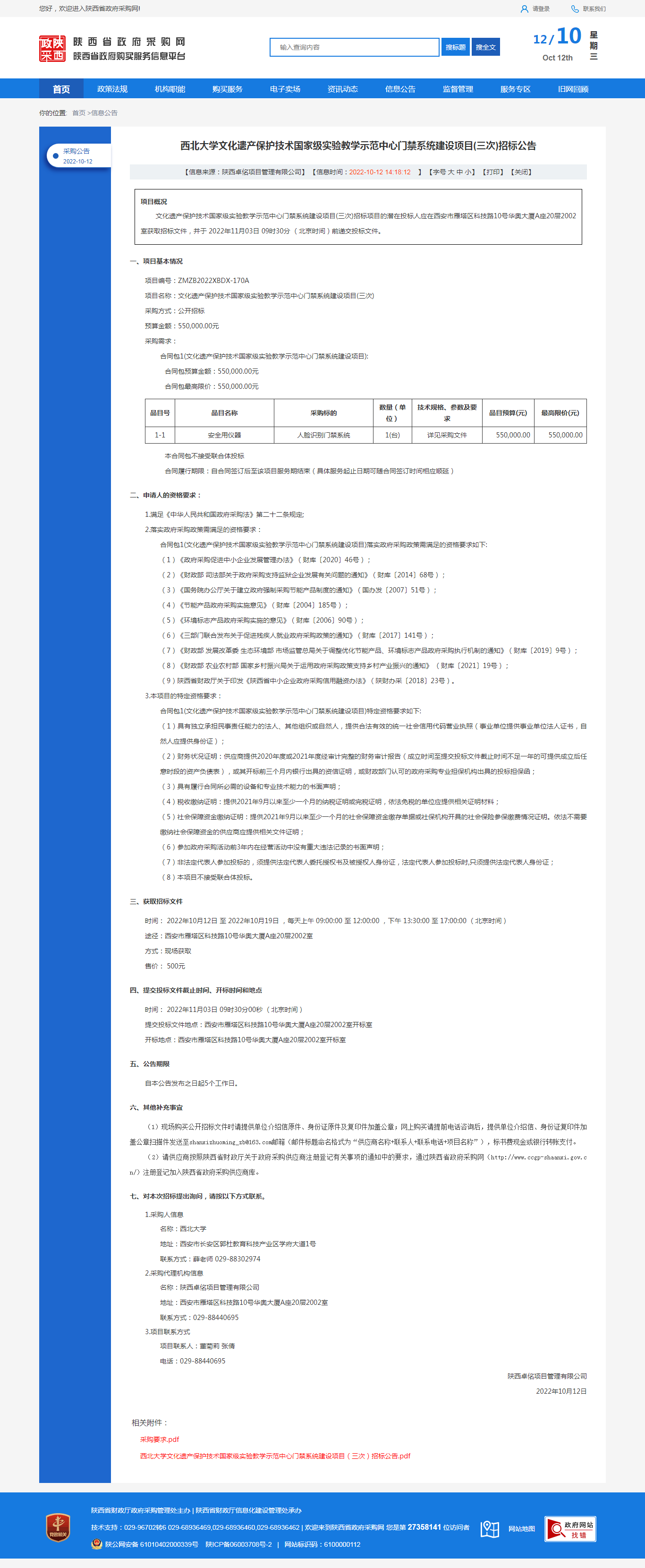 原公告链接:http://www.ccgp-shaanxi.gov.cn/freecms/site/shaanxi/ggxx/info/2022/8a69c29183b278190183ca109d691084.html?noticeType=001011¬iceId=37f82e6c-49f6-11ed-9a8e-08c0eb20c666