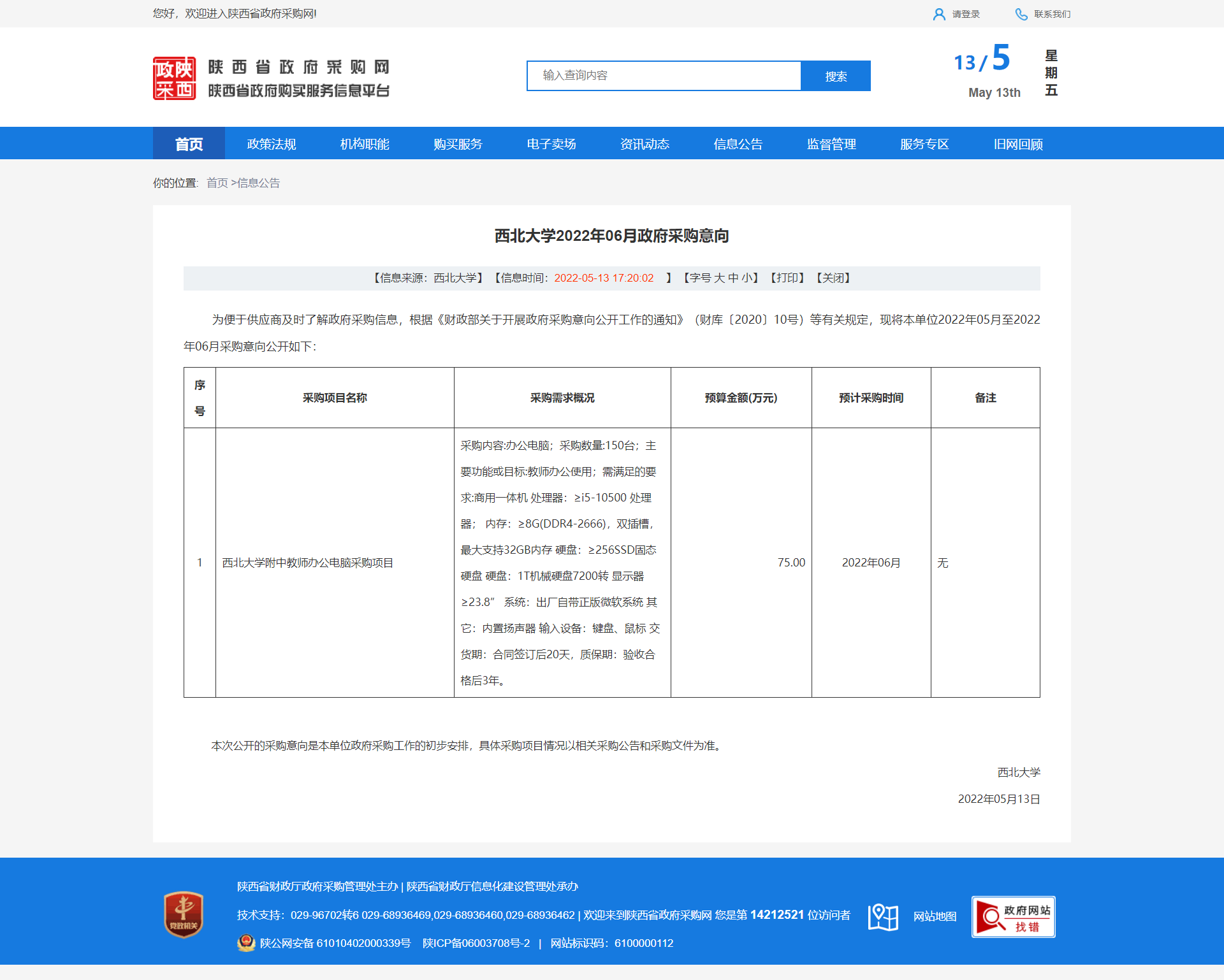 原公告链接:http://www.ccgp-shaanxi.gov.cn/freecms/site/shaanxi/ggxx/info/2022/8a69c0c980ba996a0180bcb638123331.html?noticeType=59¬iceId=147b64d1-d29e-11ec-9a8e-08c0eb20c666