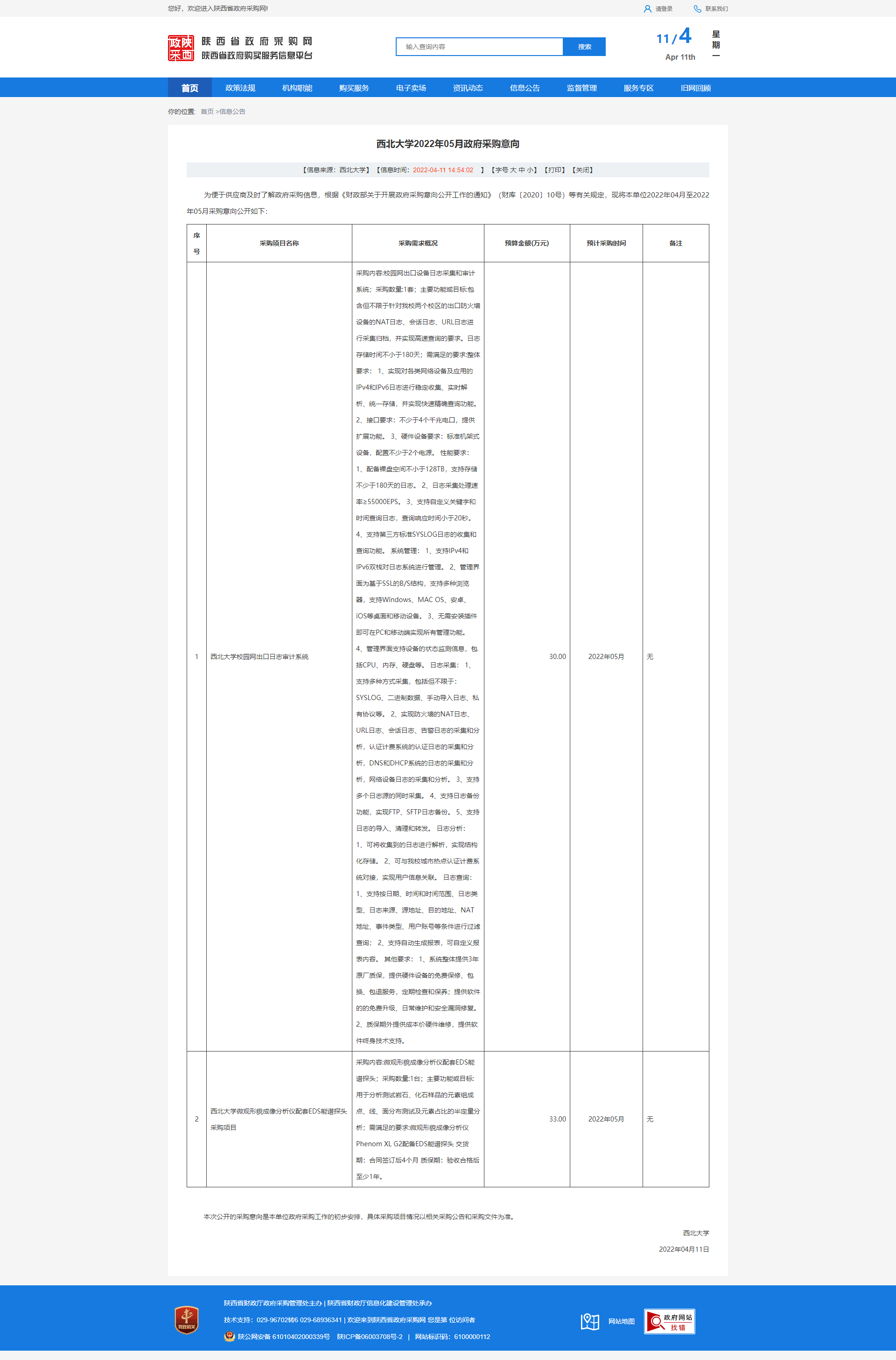 原公告链接:http://www.ccgp-shaanxi.gov.cn/freecms/site/shaanxi/ggxx/info/2022/8a69c92a80033b740180168305694239.html?noticeType=59¬iceId=4c032207-b964-11ec-9a8e-08c0eb20c666