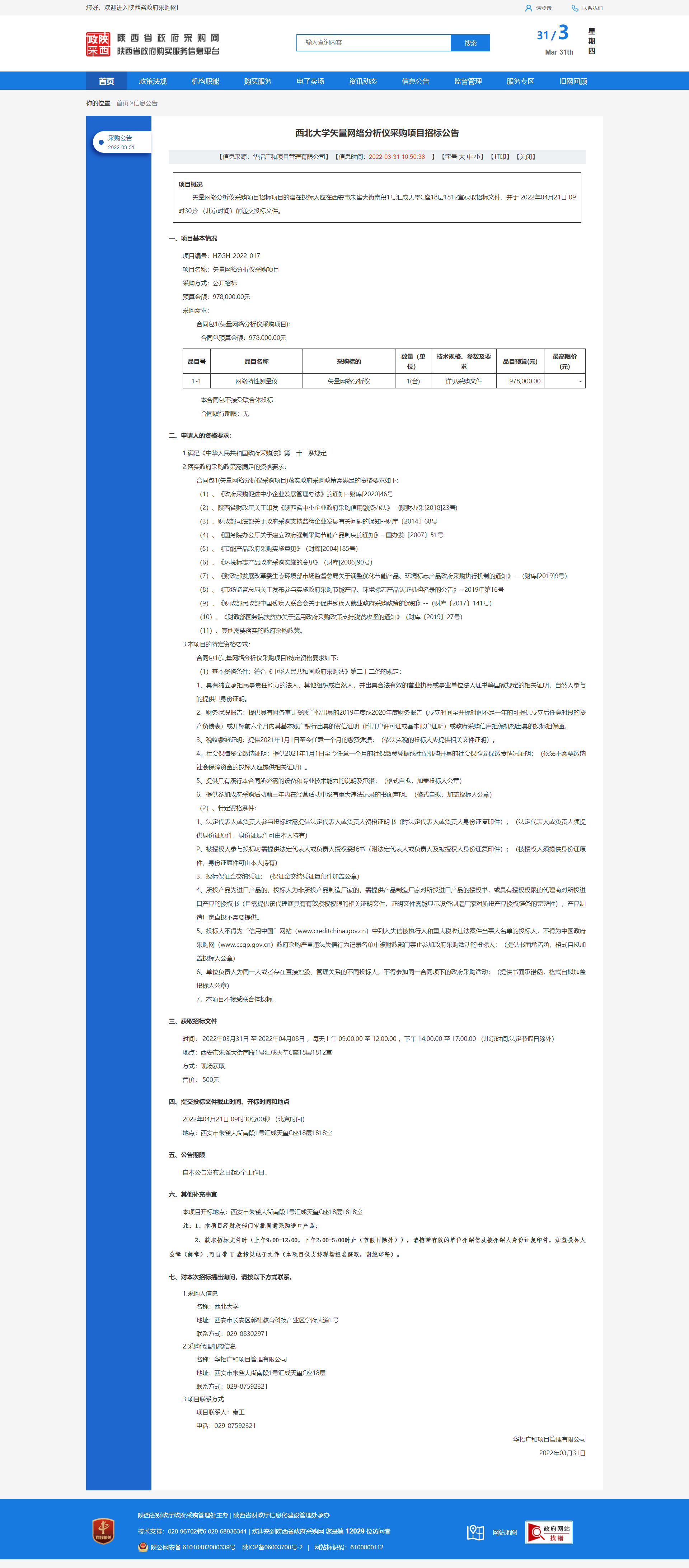 原公告链接:http://www.ccgp-shaanxi.gov.cn/freecms/site/shaanxi/ggxx/info/2022/8a69c0a17fd863f6017fdda347065724.html?noticeType=001011¬iceId=72b88d14-b09d-11ec-9a8e-08c0eb20c666