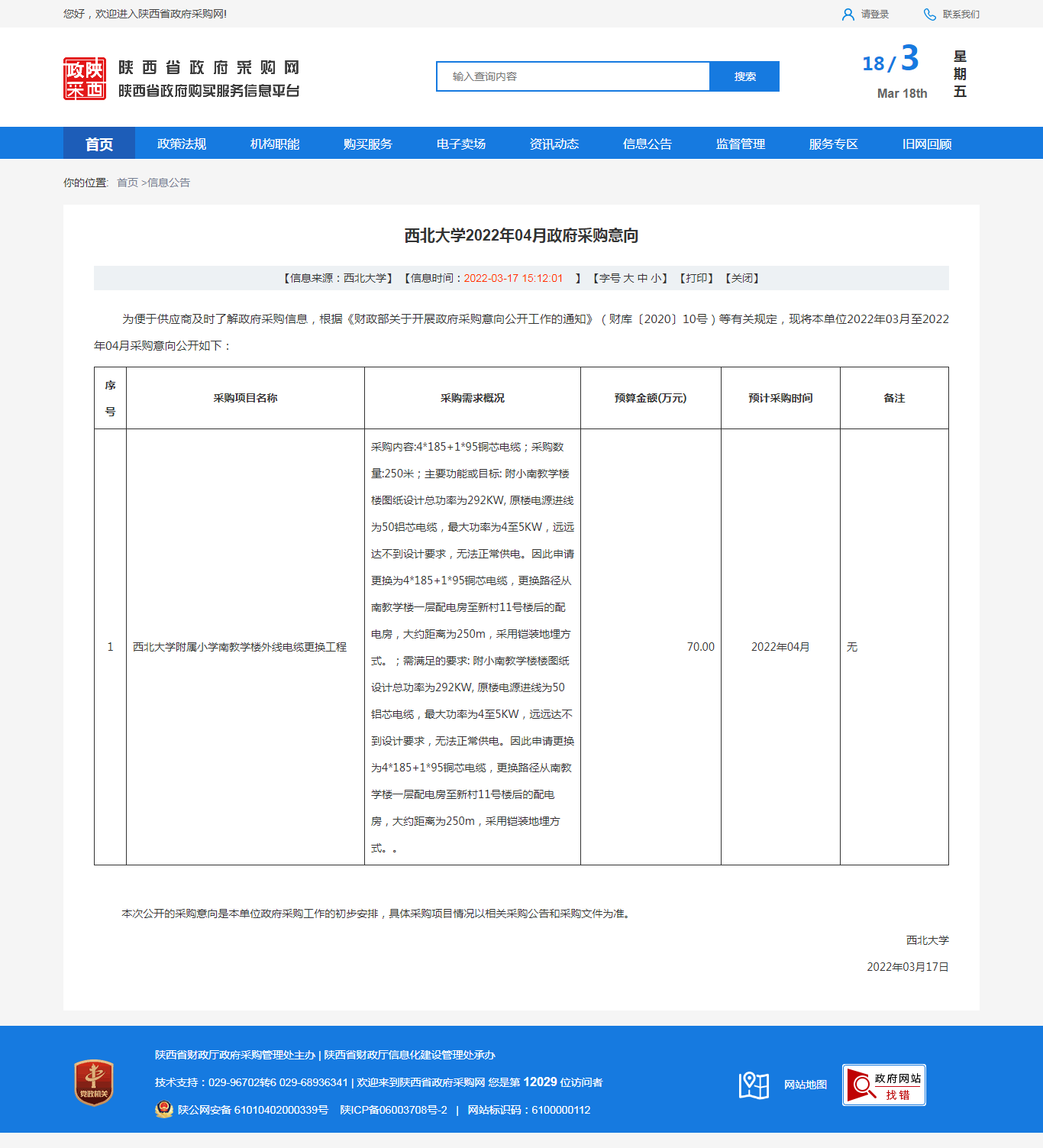 原公告链接:http://www.ccgp-shaanxi.gov.cn/freecms/site/shaanxi/ggxx/info/2022/8a69c4007f95d4d3017f96b678eb1ec0.html?noticeType=59¬iceId=a2b3ba2a-a5c1-11ec-a943-08c0eb20c486