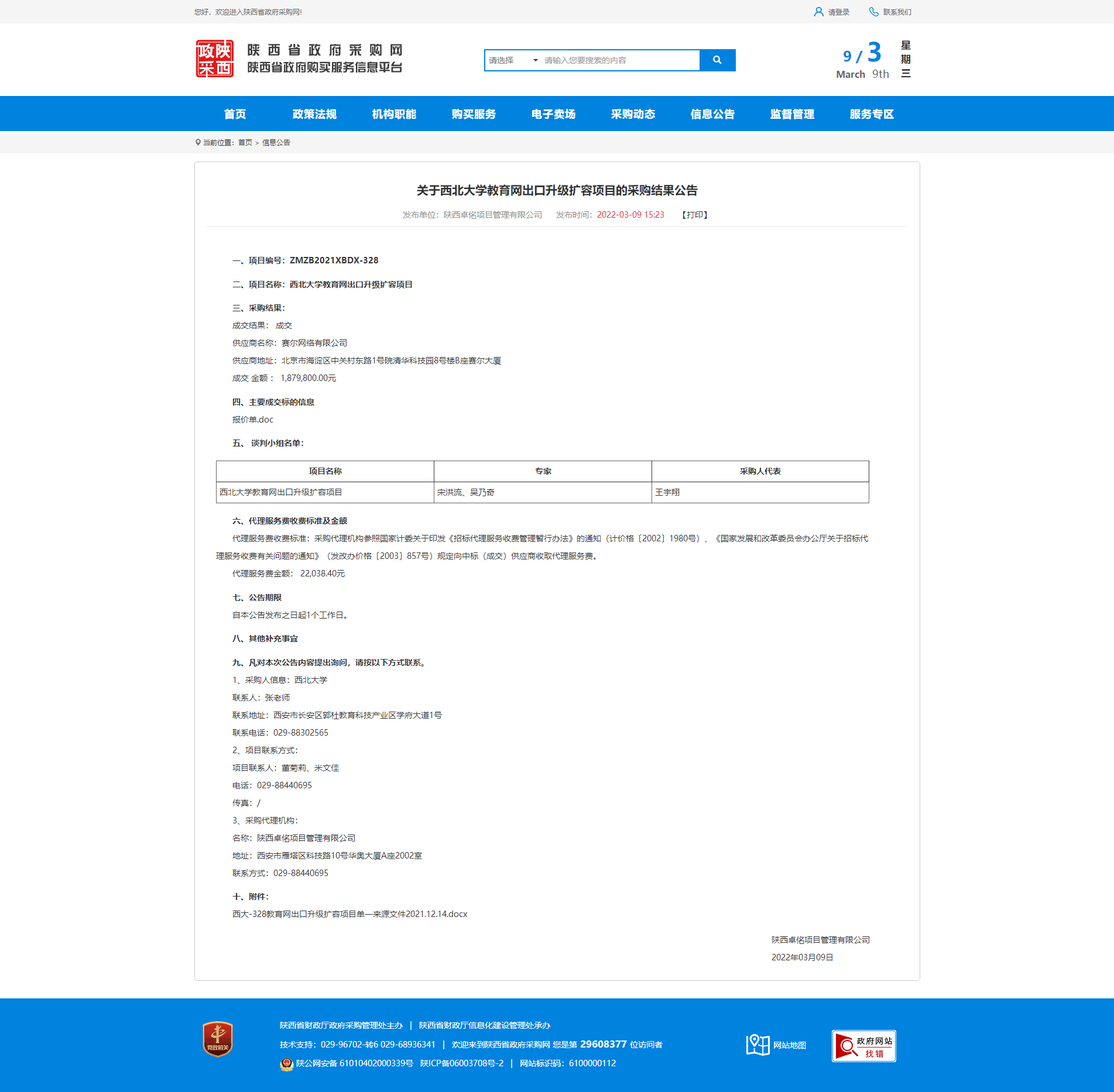 关于bat365正版唯一官网教育网出口升级扩容项目的采购结果公告