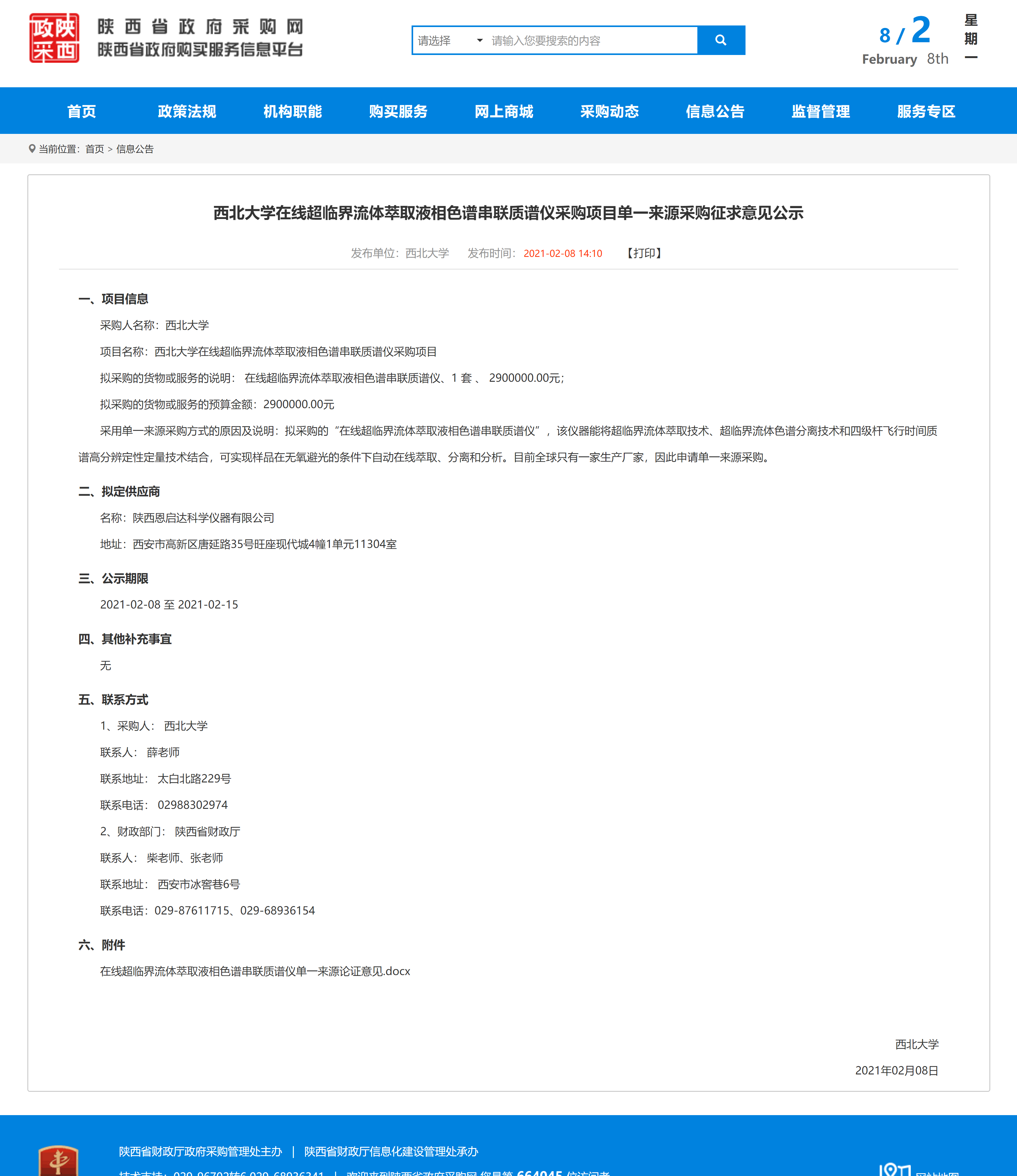 bat365正版唯一官网在线超临界流体萃取液相色谱串联质谱仪采购项目单一来源采购征求意见公示