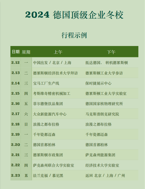 为提升学生全球竞争力,bat365官网将在“学生海外访学计划”的框架下开展系列国际交流项目,引导学生积极参与境外高水平大学线上线下课程学习与科学研究,今年将继续推荐优秀学生参加“2024年德国顶级企业冬校项目”,现将具体信息通知如下: