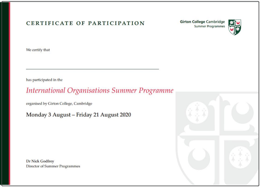 学生可获权使用剑桥大学官方教学系统Moodle, 并可获得剑桥大学格顿学院的官方成绩单与项目证书;