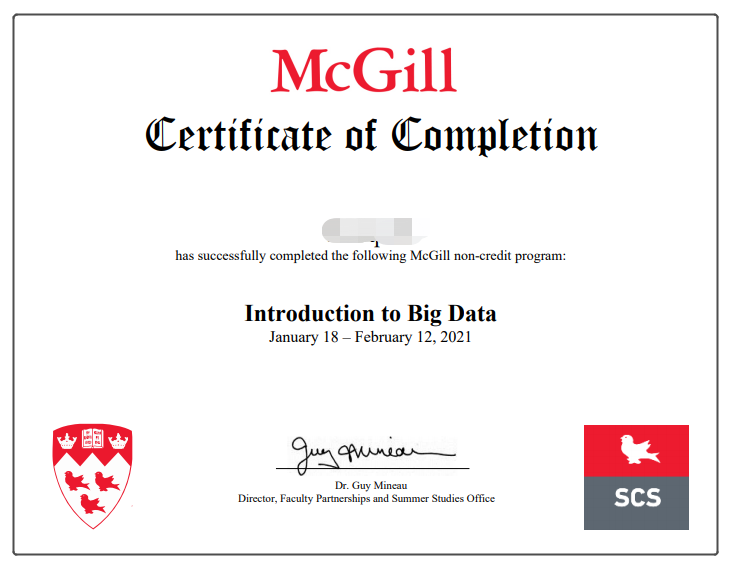 【成绩单与证书】可获得麦吉尔正式的课程成绩单与项目证书,为个人简历添砖加瓦。