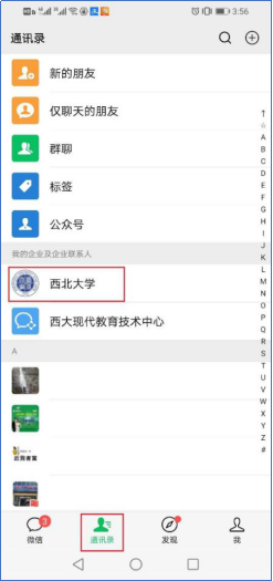 进入微信后,点击屏幕下方的“通信录”,在通信录中点击“bat365正版唯一官网”(如图3所示),通过通信录进入bat365正版唯一官网企业号后,点击“企业应用”菜单项(如图4所示),即可显示bat365官网企业号里集成的所有应用服务。