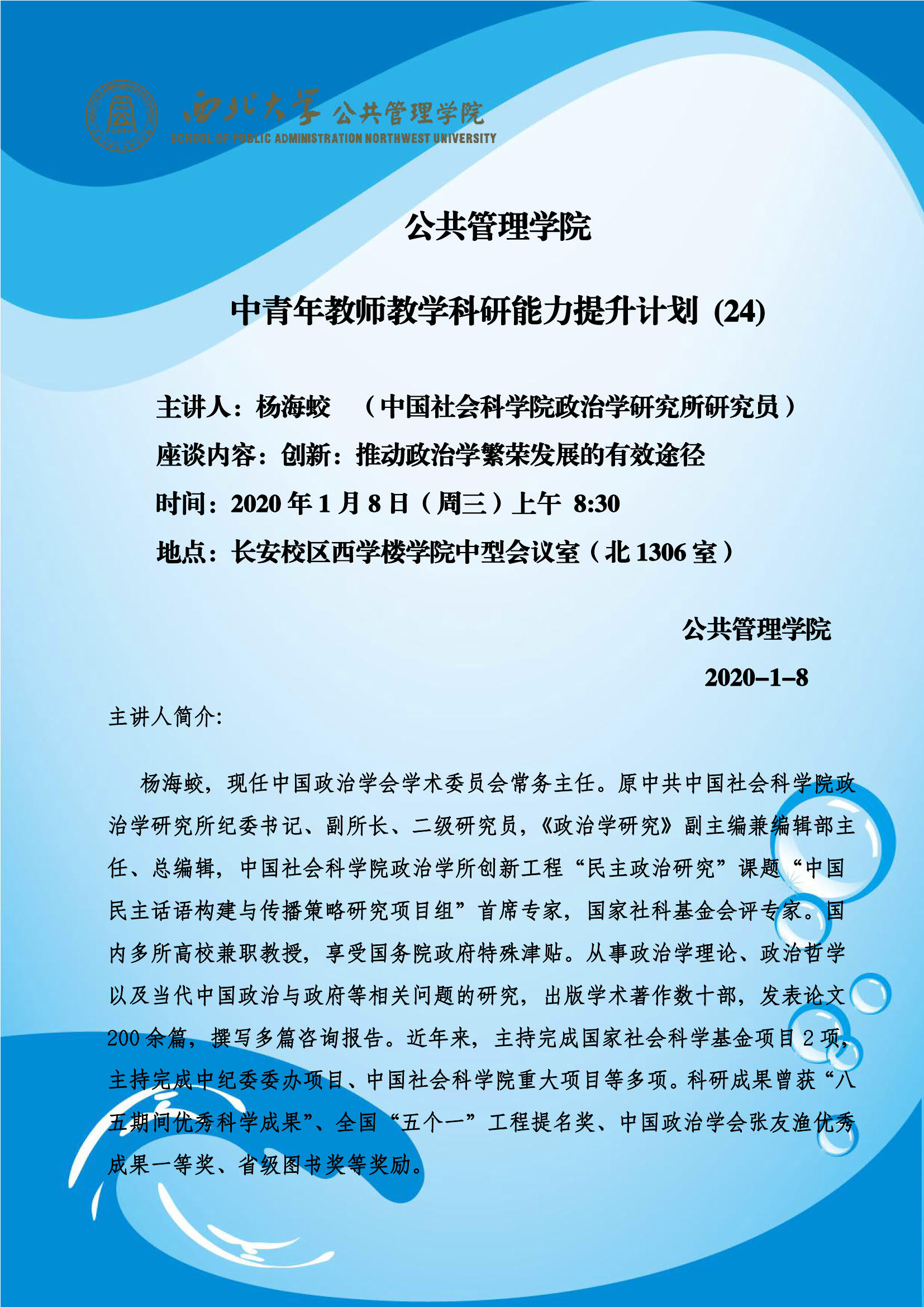 公管院讲座通知——中青年教师教学科研能力提升计划24
