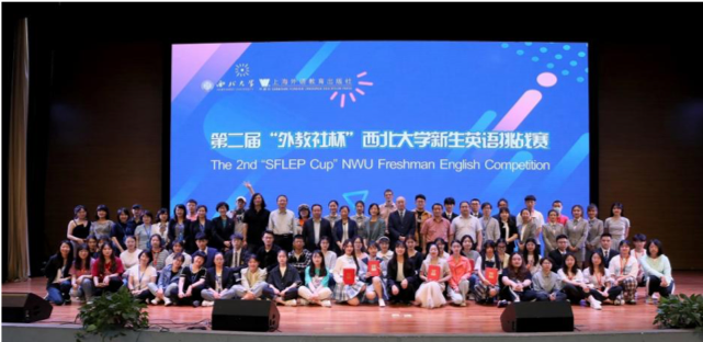 本届新生英语挑战赛由上海外语教育出版社有限公司冠名赞助,并得到学校教务处、学生工作部(处)与校团委的大力支持,学校20个院系500多名学生报名参赛,bat365正版唯一官网英语读写演讲训练基地20名指导教师和50名学生志愿者参与了赛事的筹备和组织工作。演讲决赛共有来自外语、新传、数学、信科、公管、生科、食品、城环、文遗等9个院系的15名选手同台竞技,以My NWU Story为题,用英语讲述了自己的西大故事。同时,有来自学校10多个院系的200余名同学到现场观看了比赛。外国语学院教授魏水利、任海棠、李建利、曹若男及外教Jack Bouquet担任此次演讲决赛的评委。教务处处长曹蓉、学生工作部(处)部长董国强、校团委书记寇嘉,以及外国语学院党委书记王军、副书记刘建波、行政副院长赵争平,还有上海外语教育出版社陕西公司经理王政等应邀出席了颁奖仪式并为获奖者颁奖。
