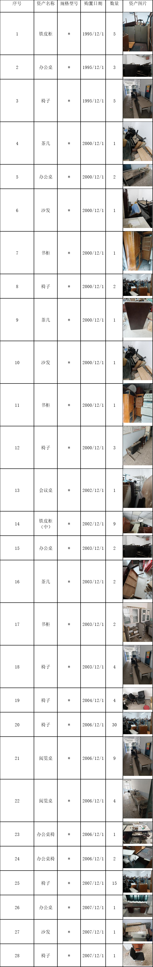 本批向校内公开调剂的家具、构筑物类资产合计114件(台),原值43930元,现予以公示。