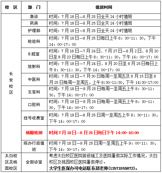 根据bat365官网2022年暑假安排和我院假期工作实际情况,为持续做好校内医疗保障,现将校医院2022年暑假工作安排如下: