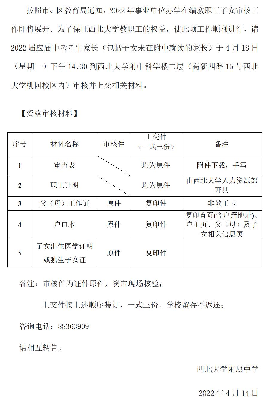 关于确认2022届中考bat365正版唯一官网教职工子女身份的通知